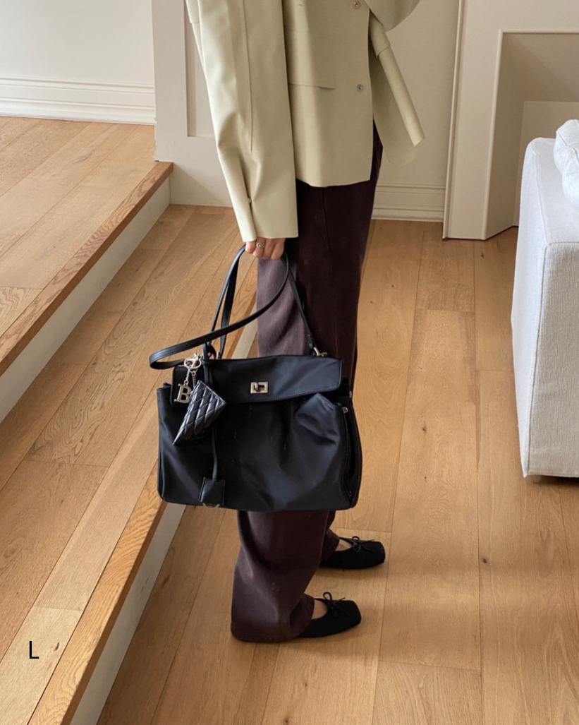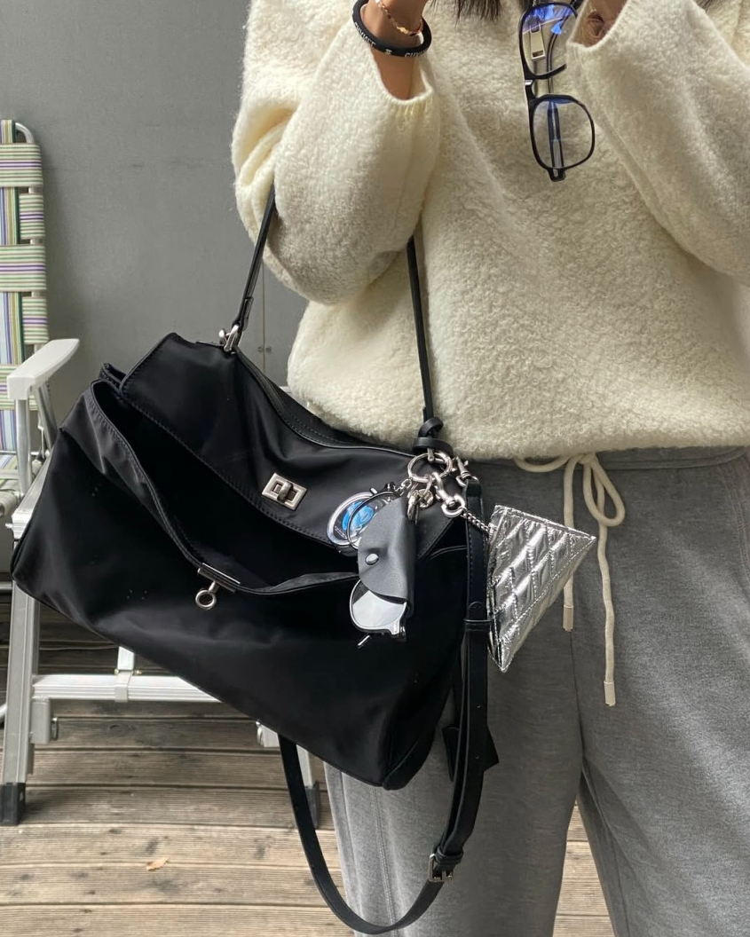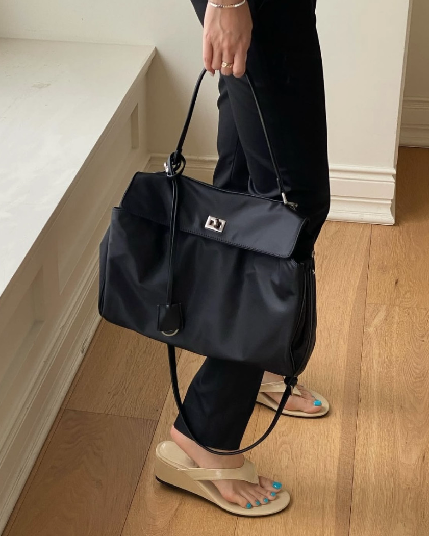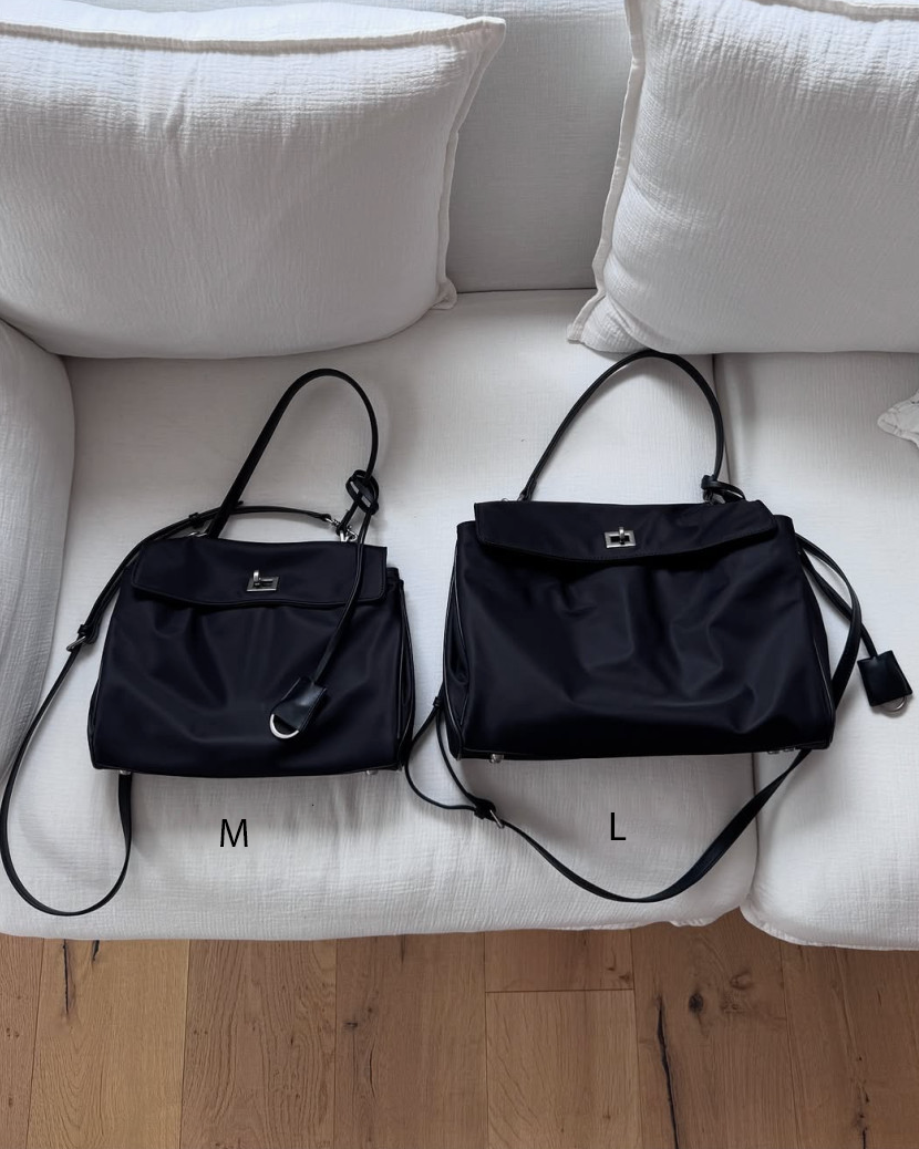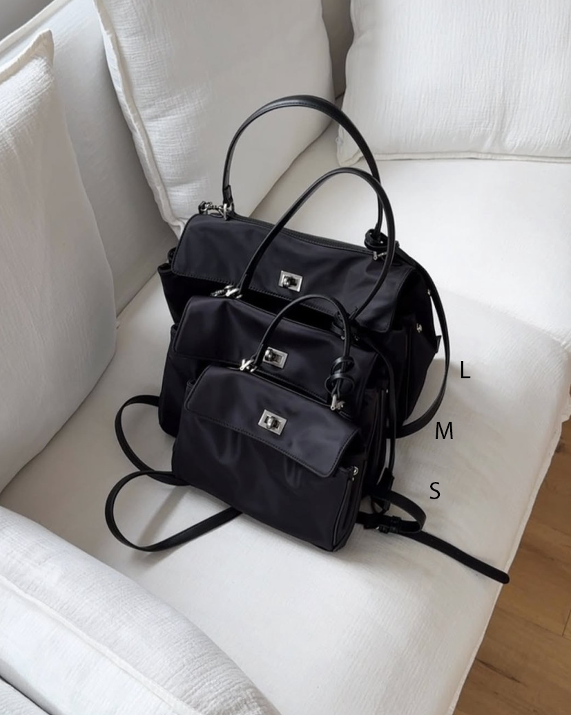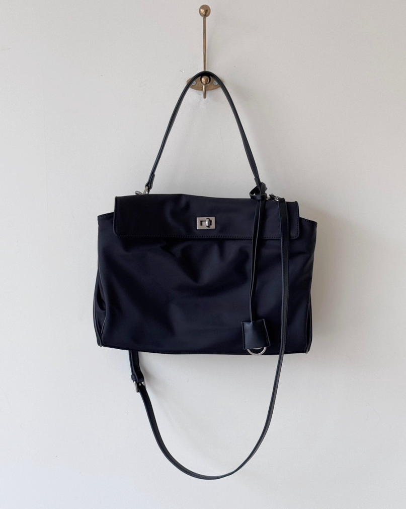 Made from light and durable coated nylon, this bag features two closing buckles that allow you to style the bag in two different ways.