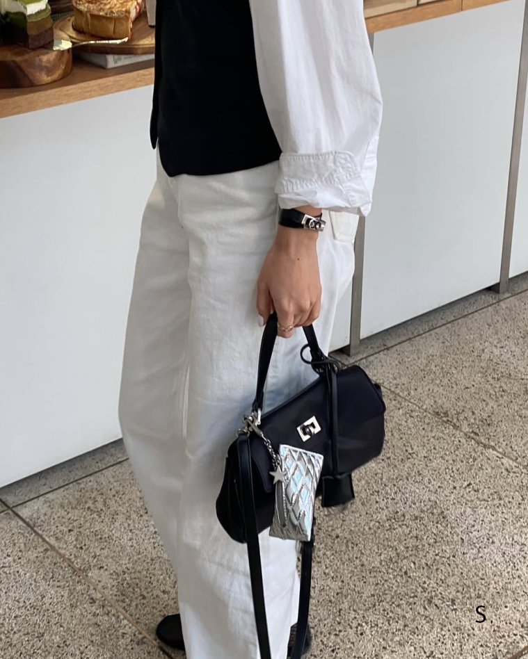 It is designed with accordion-style buttons at the side to create a spacious interior. Comes with a detachable strap, providing the versatility to wear it as either a shoulder bag or a crossbody bag.