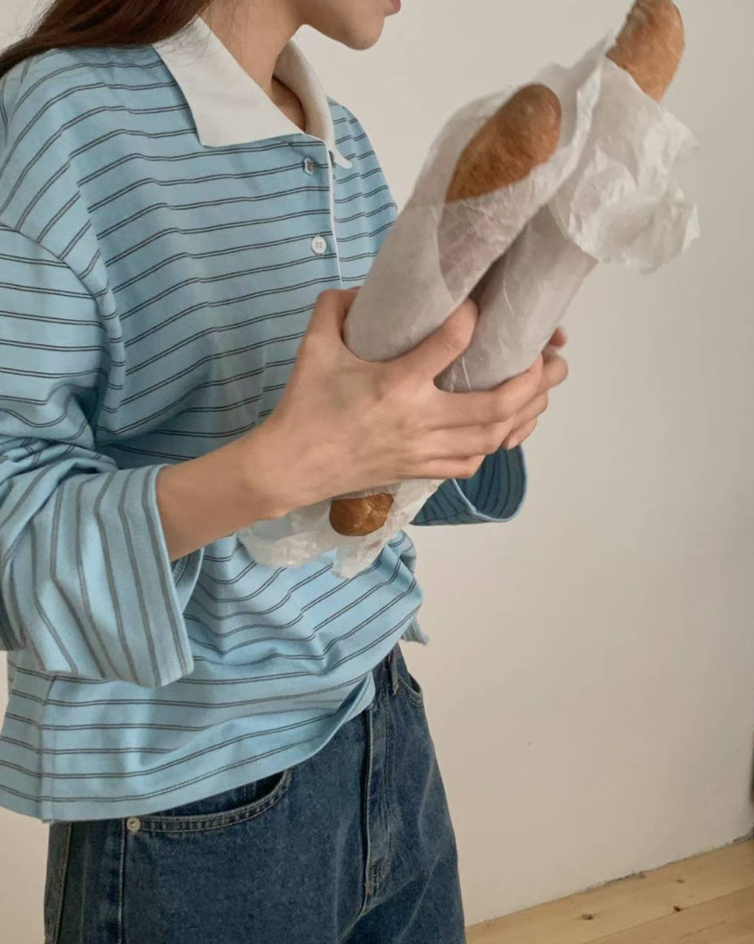 Made from 100% soft cotton, this top features a round collar in a color block design. It has a relaxed fit with a semi-cropped length, giving it a casual and lovely look.